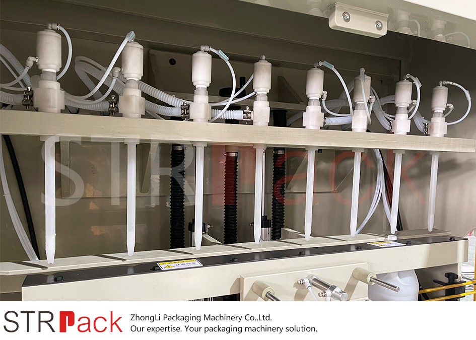 This STRPACK anti-corrosion filling and capping line is specially designed for strongly corrosive liquids and products that cannot contact metal during filling.
